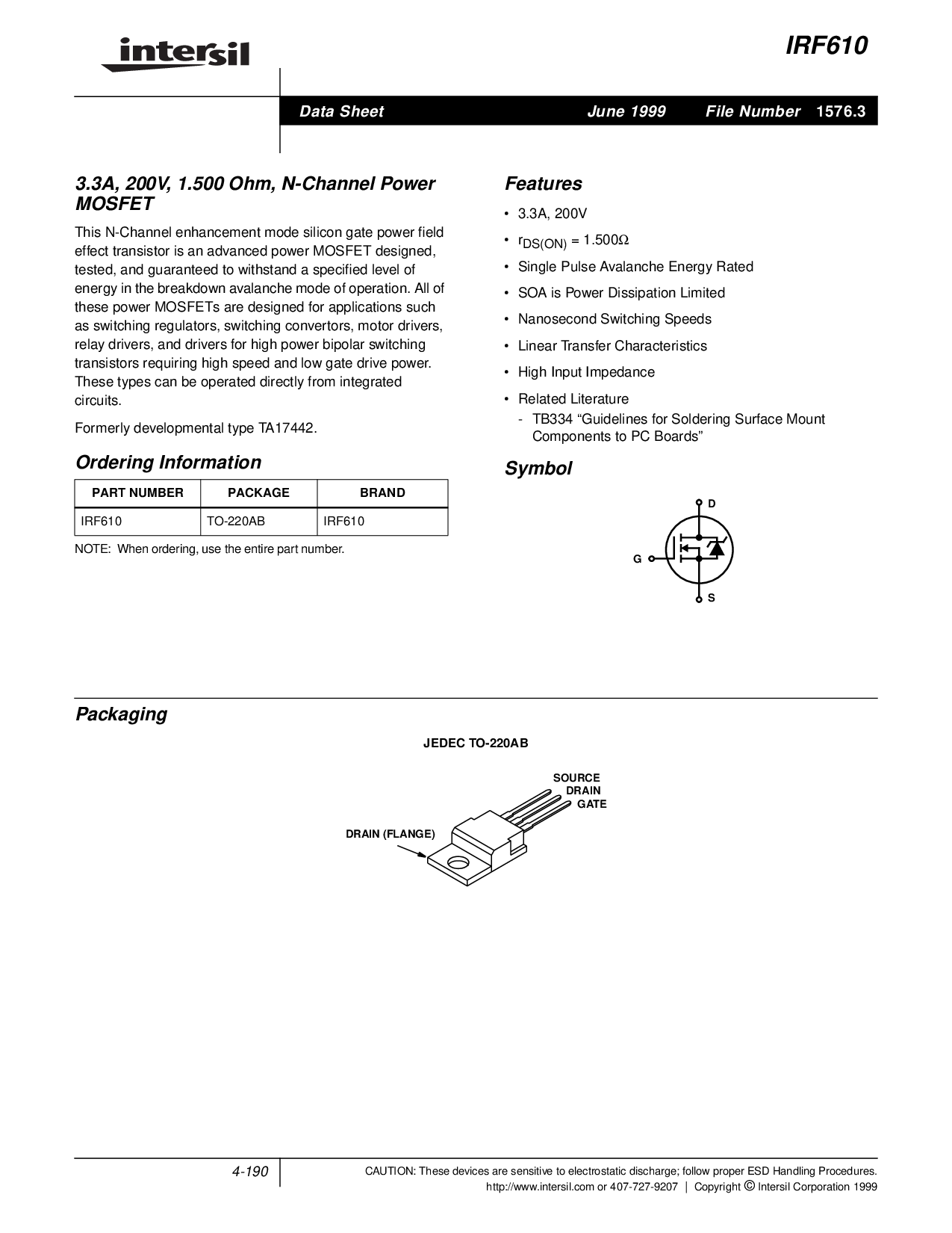 IRF610 至-220ab IRF610