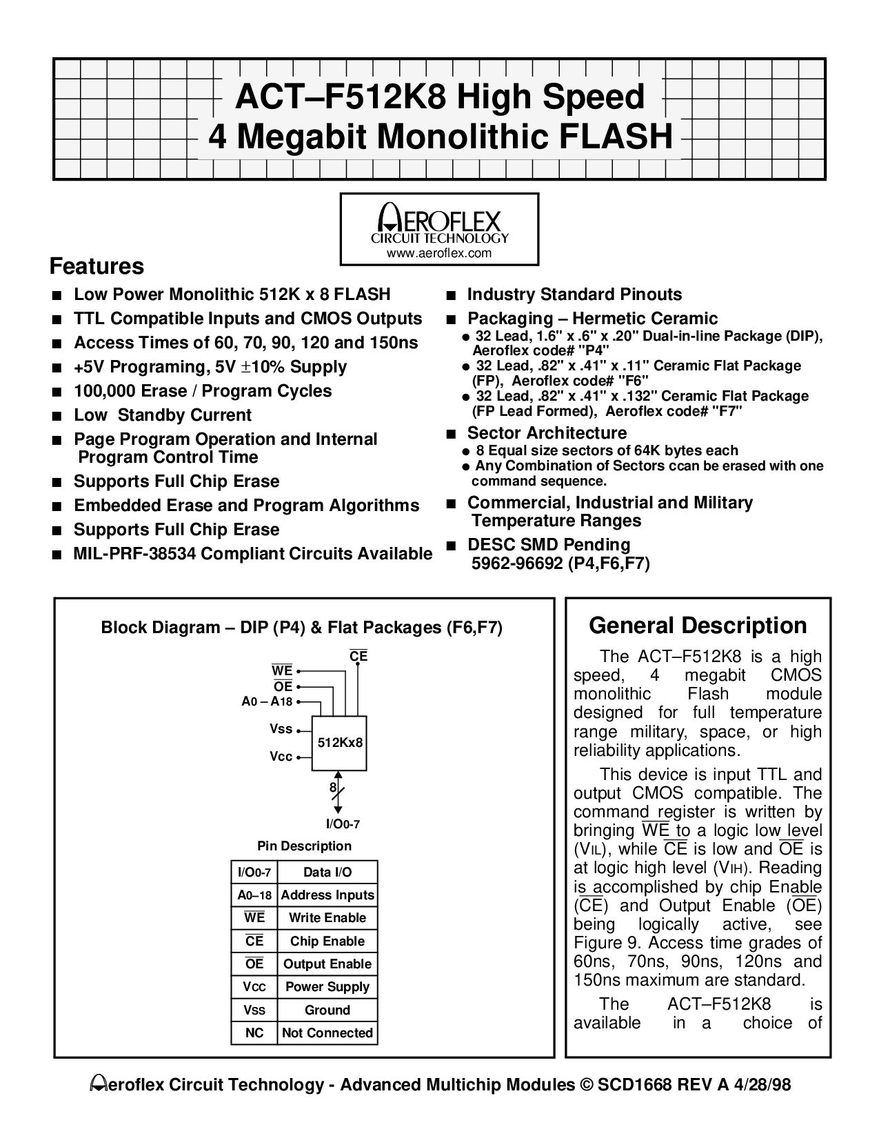 eroflex 电路技术 - 高级 多芯片 模块 © scd1668 rev 一个 4/28/98