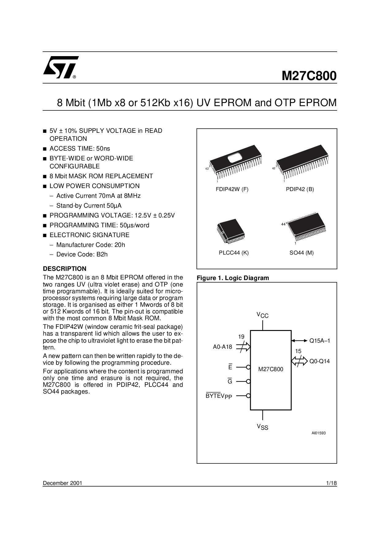 这 M27C800 是 一个 8 Mbit 非易失存储器 提供 入点 这