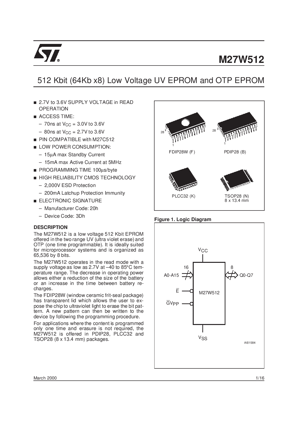 这 M27W512 是 一个 低 电压 512 kbit 非易失存储器