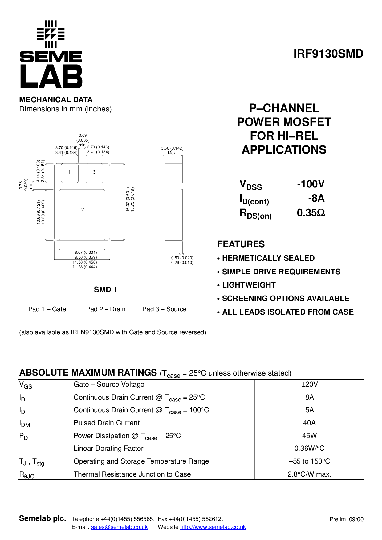 (也 可用 作为 irfn9130smd 与 闸门 和 来源 反转)