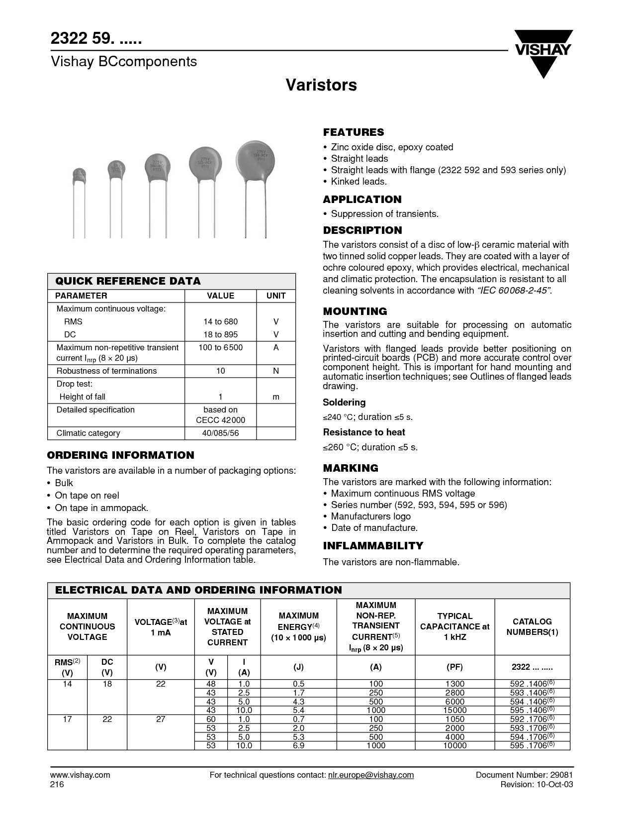 这 varistors 是 已标记 与 这 以下内容 信息: