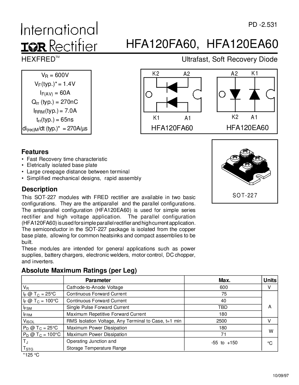 (hfa120fa60) 是 已使用 用于 简单 平行 整流器 和 高 电流 应用程序.