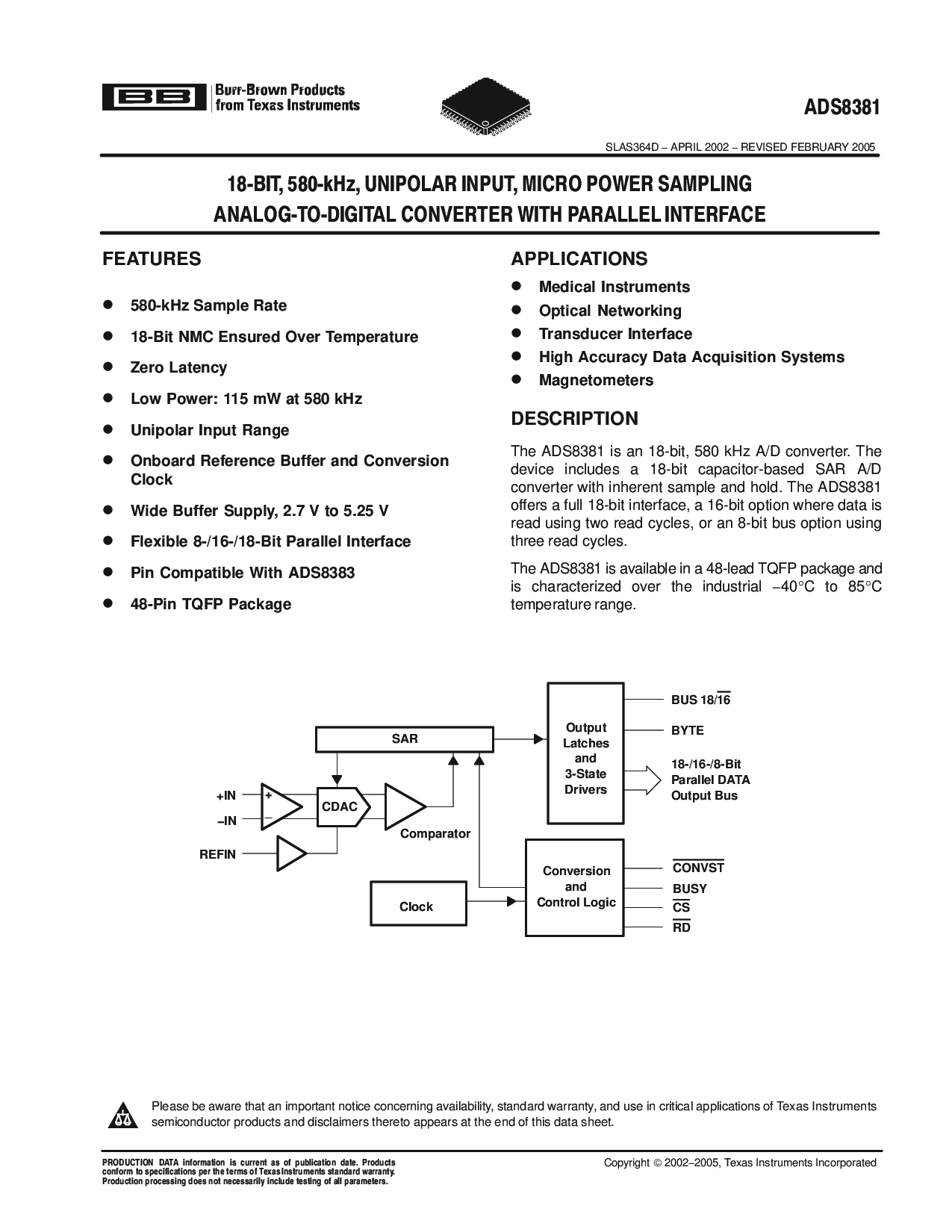这 ads8381 是 一个 18-有点, 580 khz 一个/d 变频器. 这