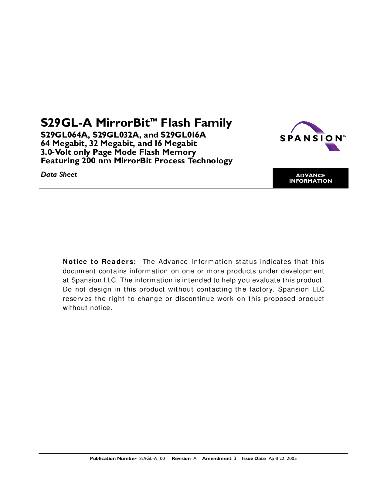 s29gl-一个 mirrorbit™ 闪光灯 家庭