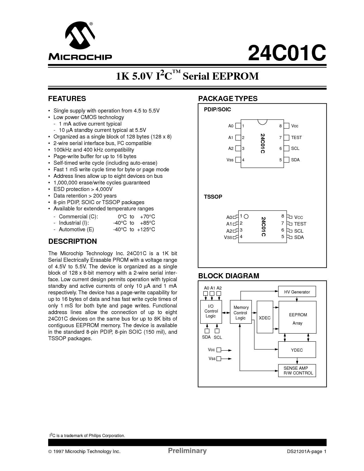 这 微芯片 技术 公司 24c01c 是 一个 1k 有点