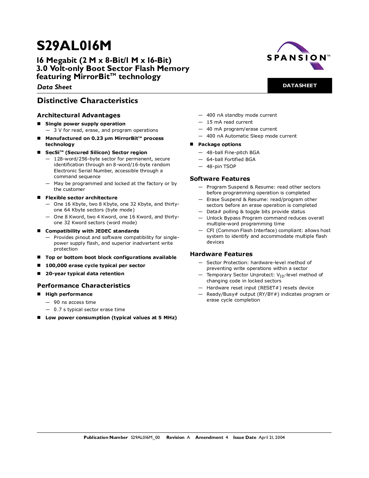 浏览型号S29AL016M90FFIR22的Datasheet PDF文件第2页