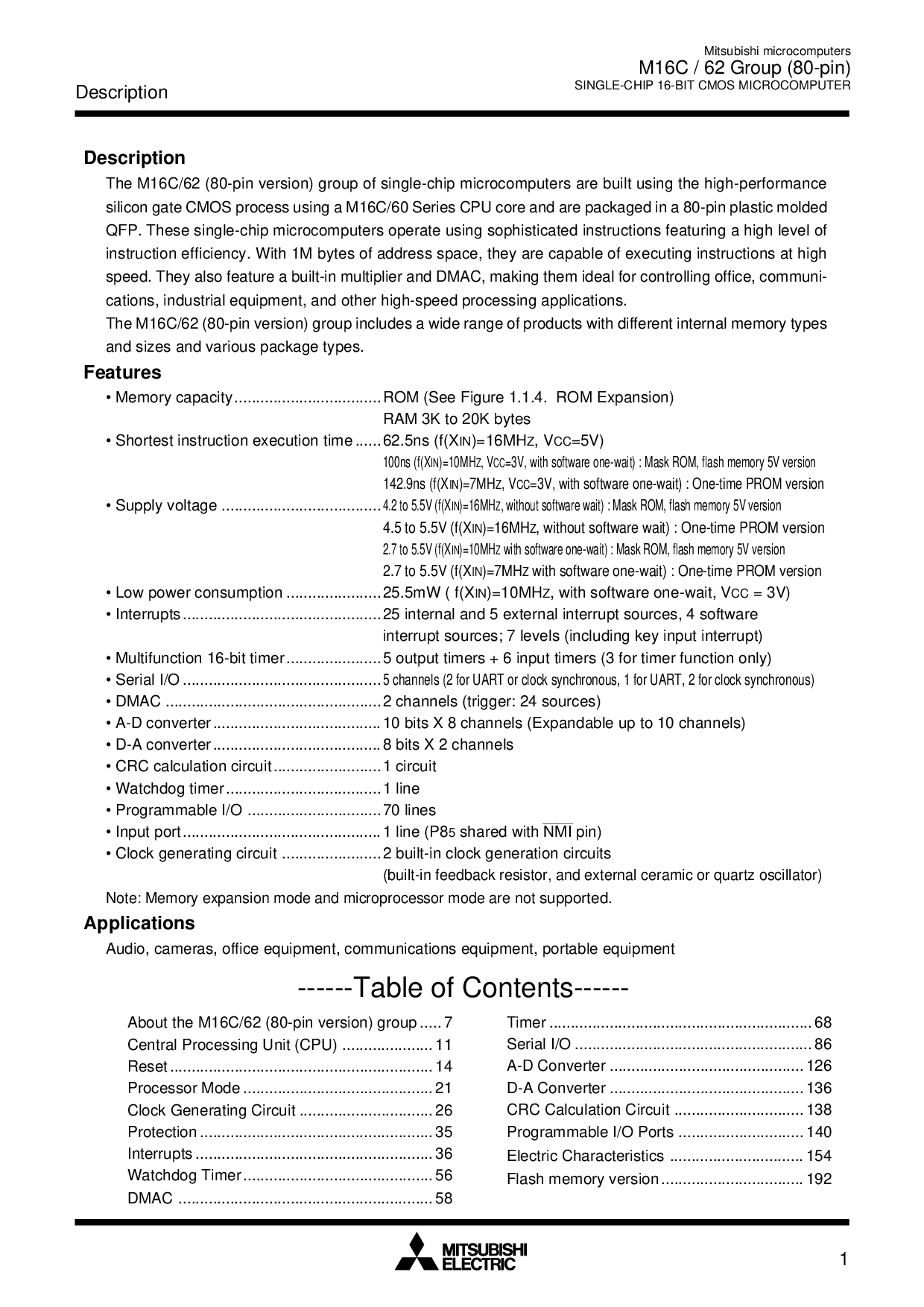 关于 这 m16c/62 (80-管脚 版本) 集团 ..... 7