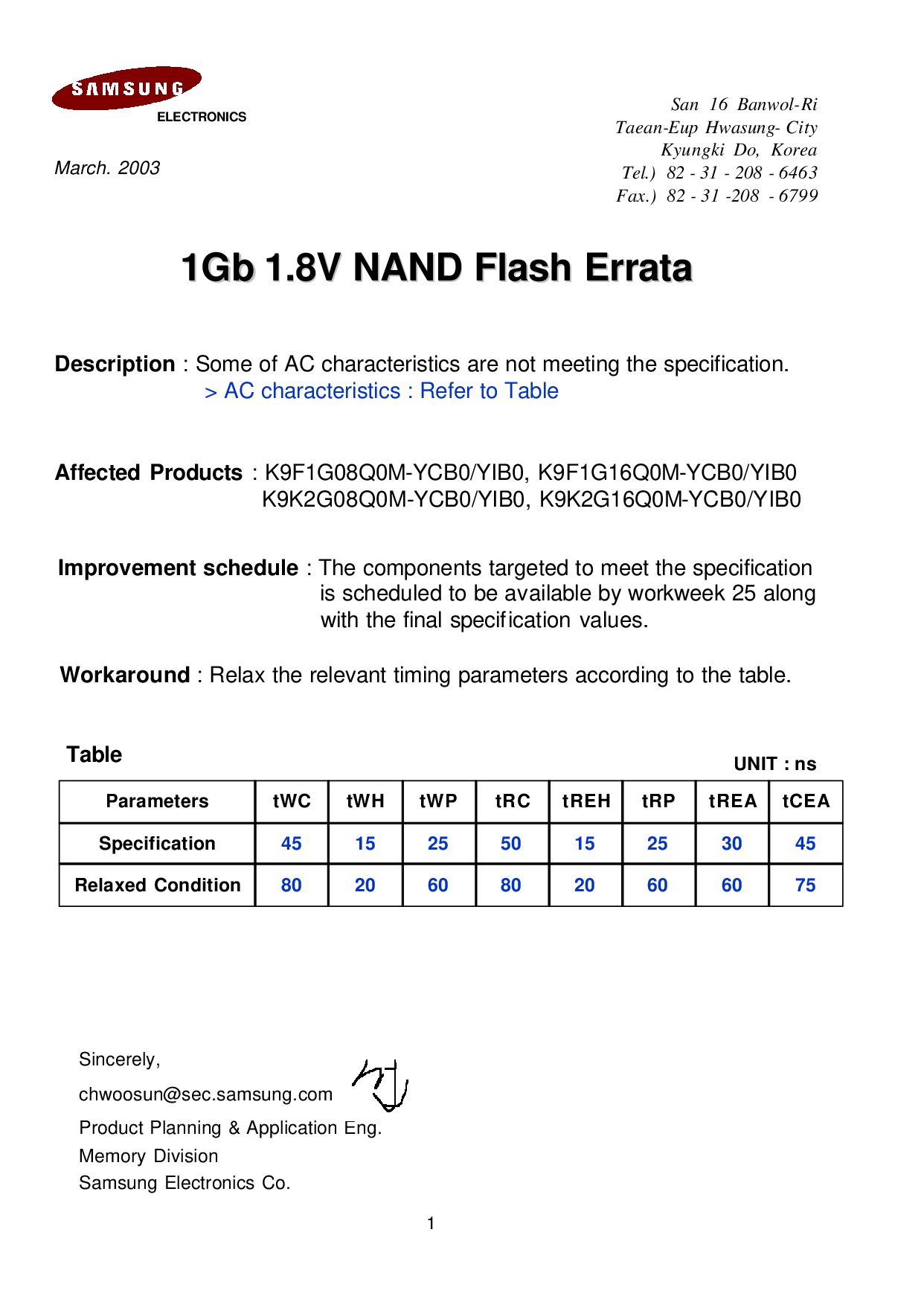 浏览型号K9F1G08U0M-FIB0的Datasheet PDF文件第8页