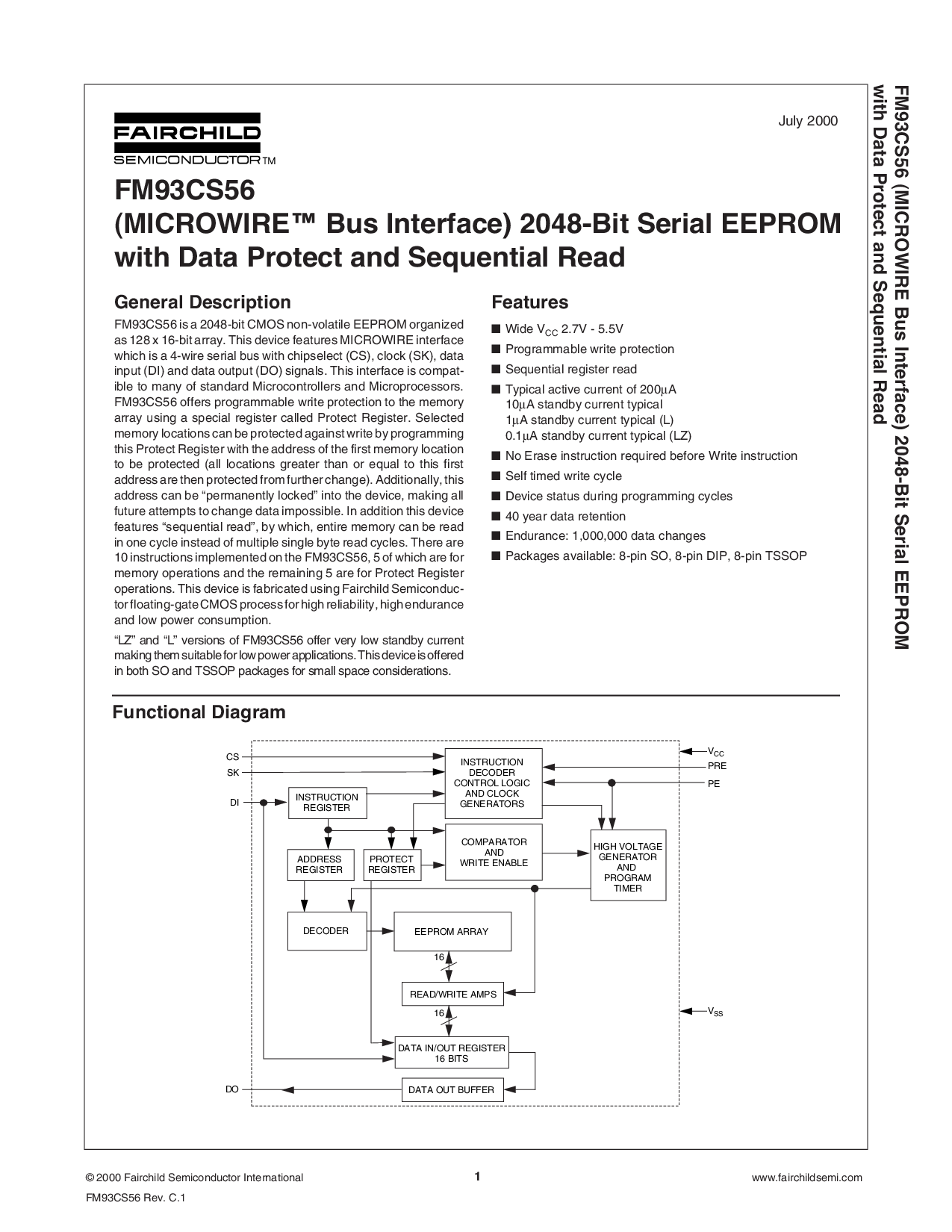 fm93cs56 是 一个 2048-有点 cmos 非挥发性 可擦可编程只读存储器 有组织的