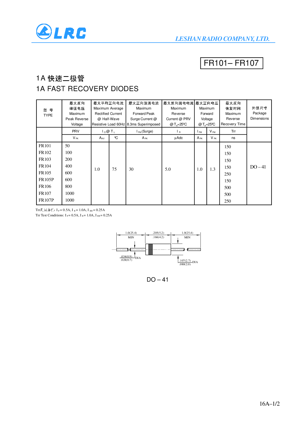 1.0 AMP FAST RECOVERY RECTIFIERS
