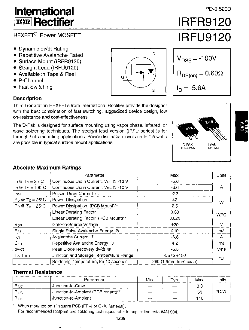 5.6A, 100V, 0.600 Ohm, P-Channel Power MOSFETs