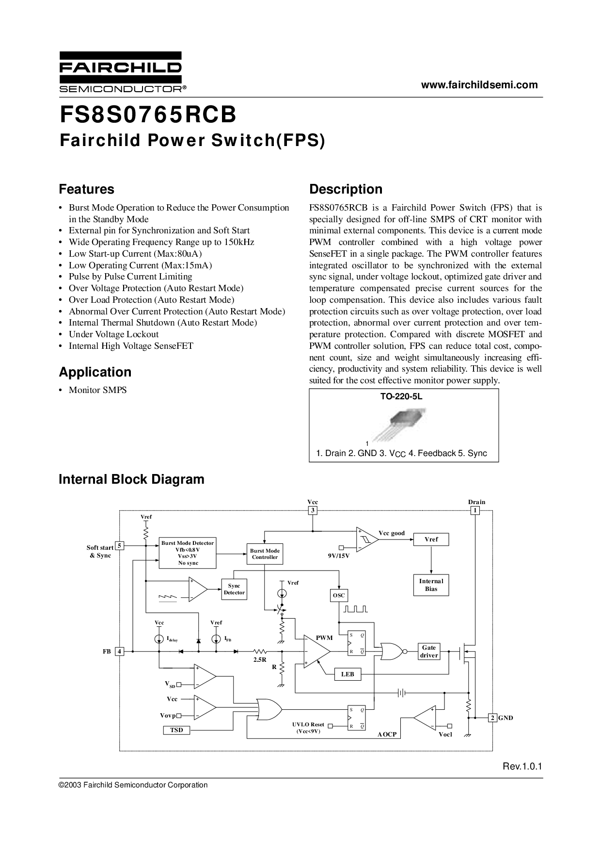 fs8s0765rcb 是 一个 仙童 电源 开关 (fps) 那 是