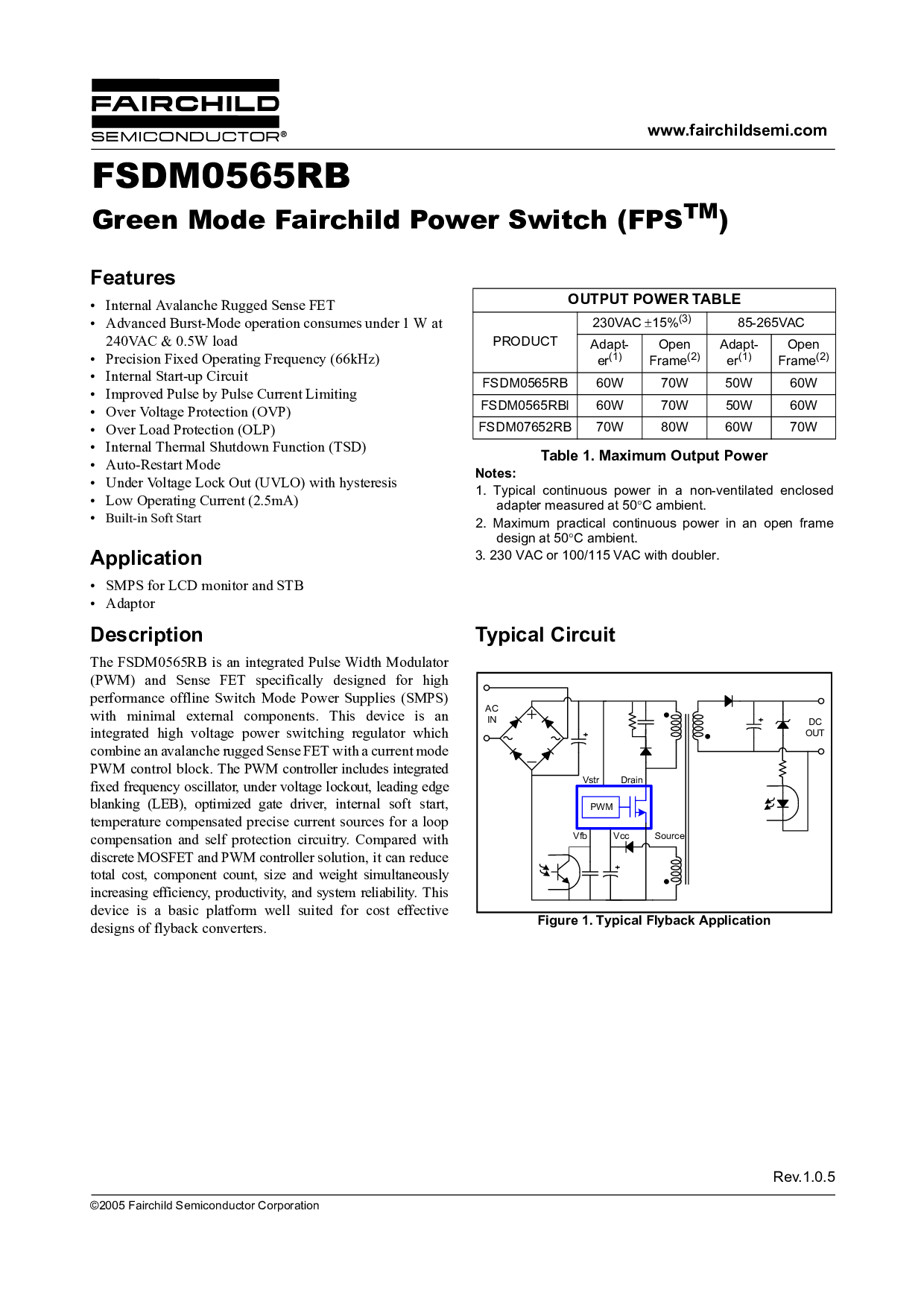 浏览型号FSDM07652RB的Datasheet PDF文件第5页