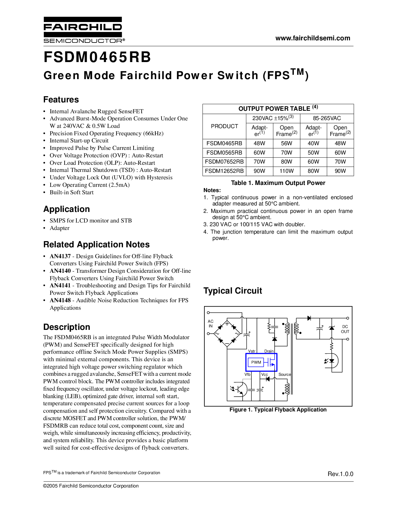 浏览型号FSDM0465RBWDTU的Datasheet PDF文件第2页