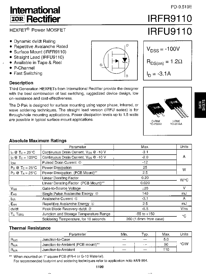 3.1A, 100V, 1.200 Ohm, P-Channel Power MOSFETs