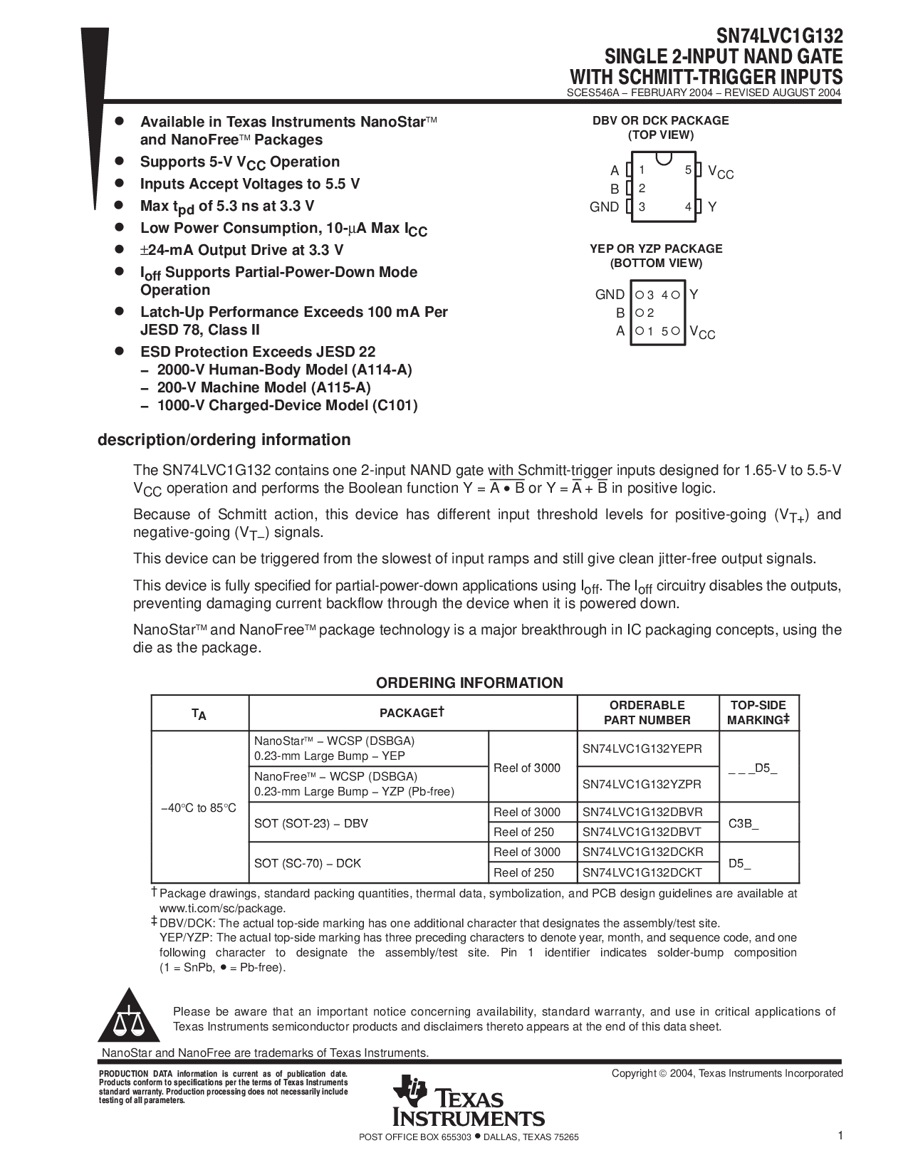 浏览型号SN74LVC1G132YEPR的Datasheet PDF文件第2页