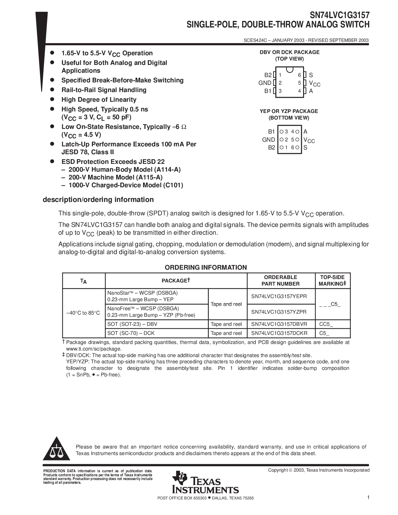sot (sc-70) – dck 胶带 和 卷轴 SN74LVC1G3157DCKR c5_