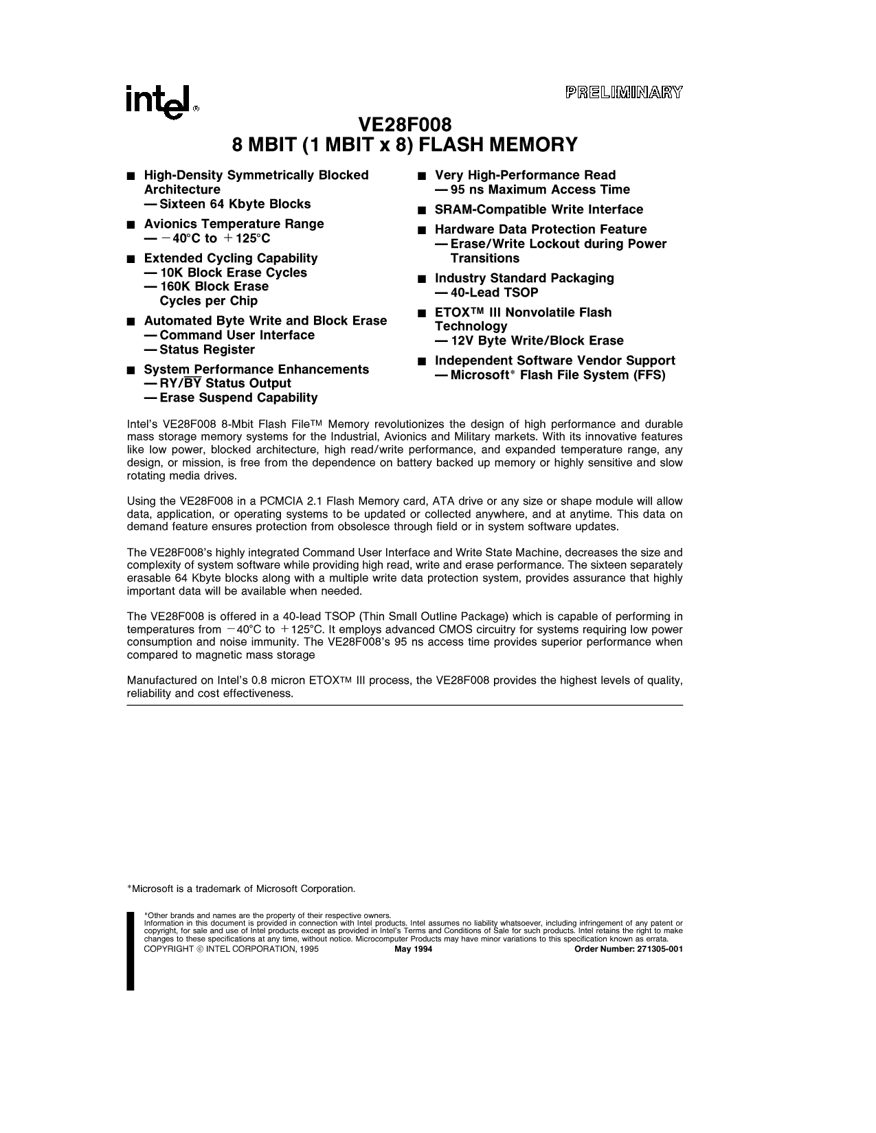 Intel’s VE28F008 8-mbit 闪光灯 文件