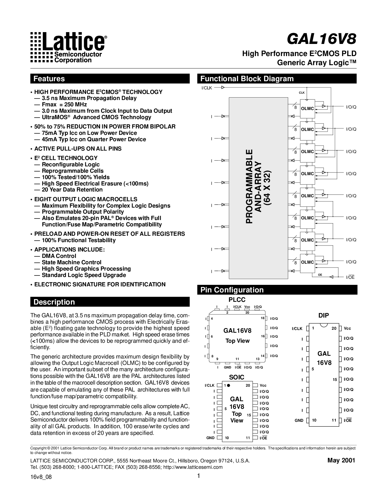 High Performance E2CMOS PLD Generic Array Logic