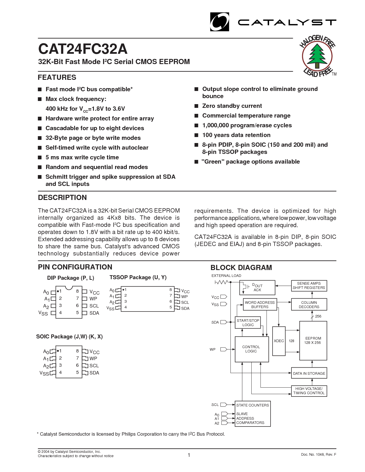 cat24fc32a 是 可用 入点 8-管脚 倾角, 8-管脚 soic