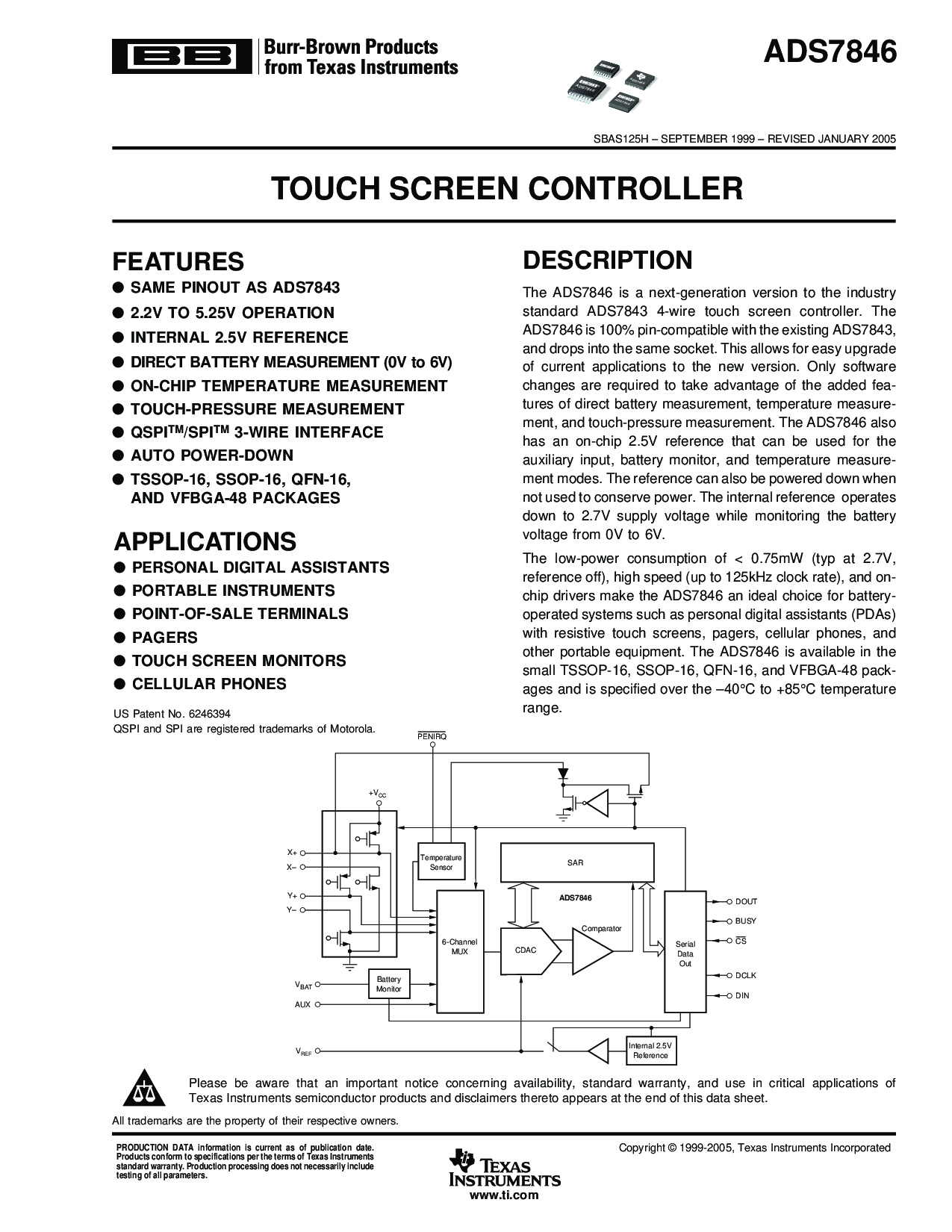 芯片 驱动程序 制造 这 ads7846 一个 理想 选择 用于 蓄电池-