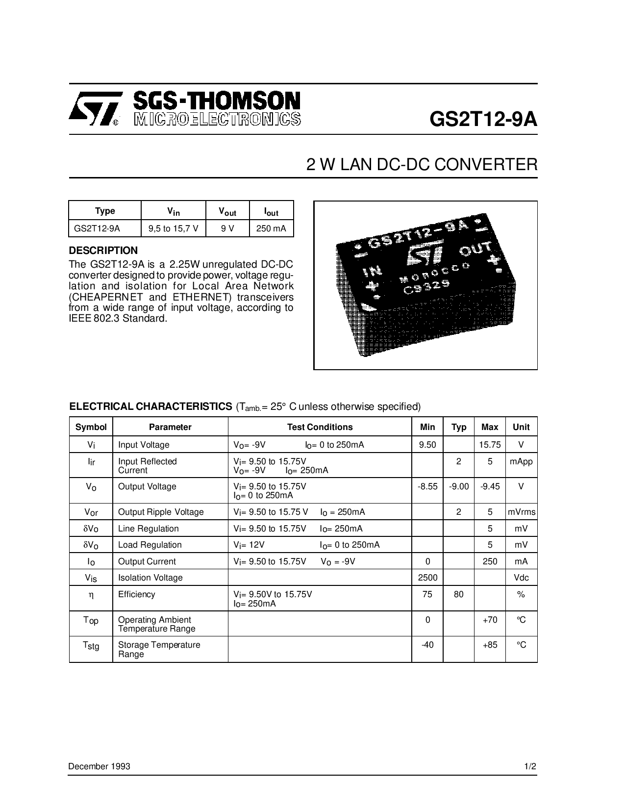 这 gs2t12-9a 是 一个 2.25w 不受管制 直流-直流