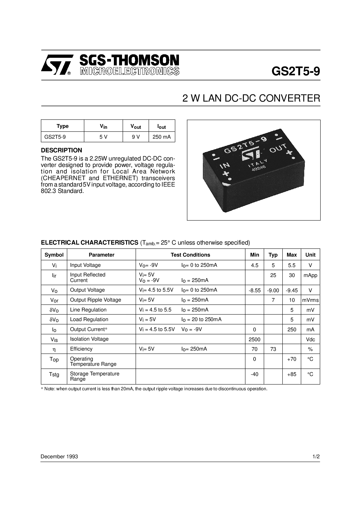 这 gs2t5-9 是 一个 2.25w 不受管制 直流-直流 con-