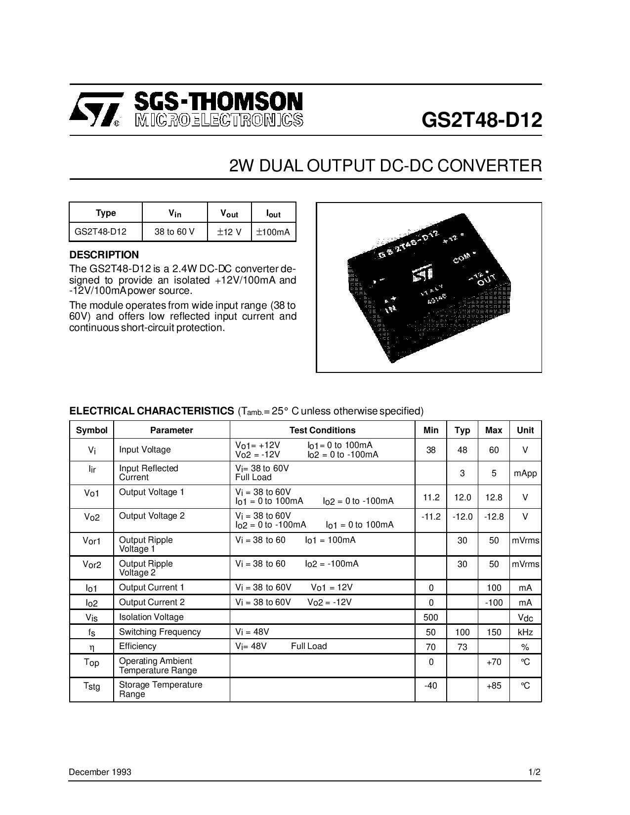 这 gs2t48-d12 是 一个 2.4w 直流-直流 变频器 de-