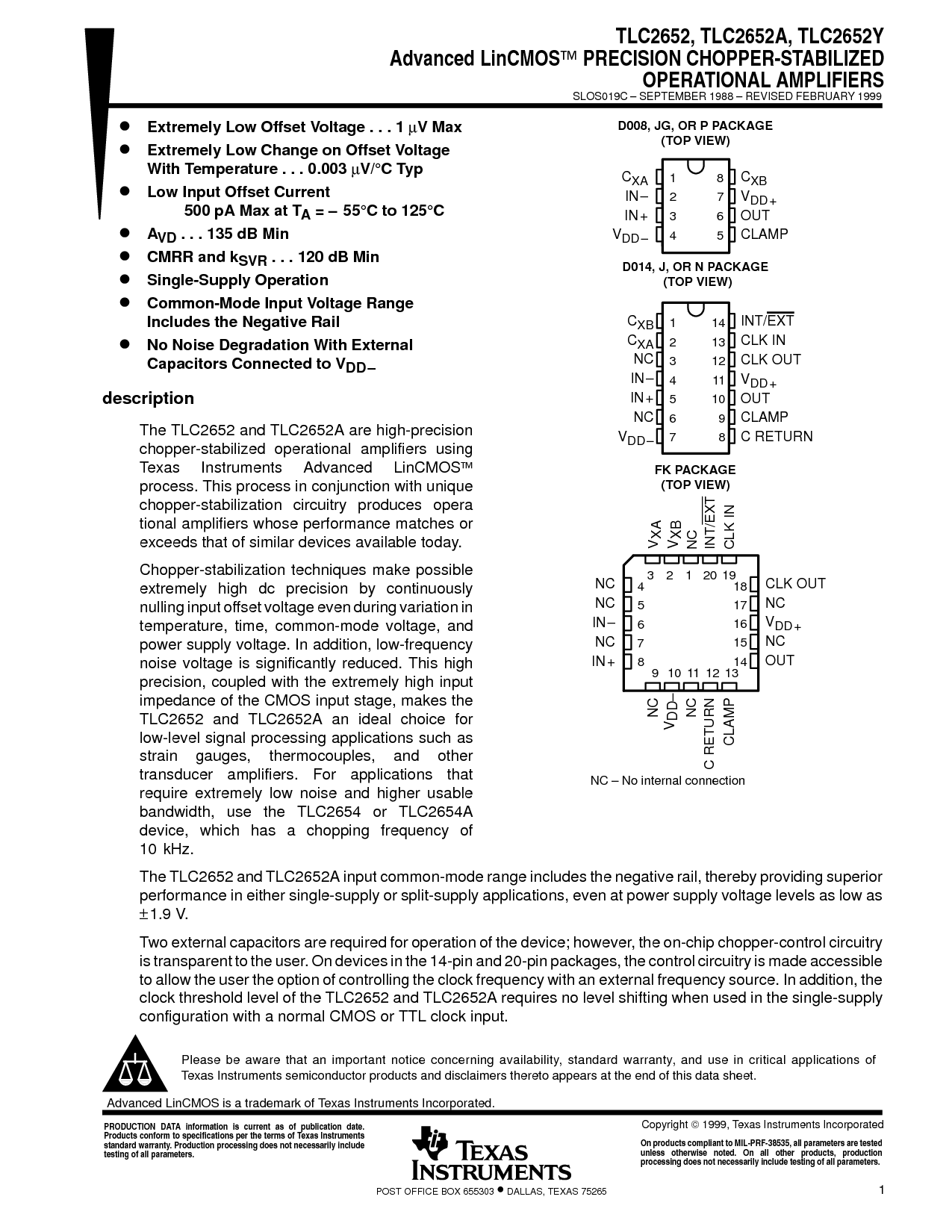 Advanced LinCMOSE PRECISION CHOPPER-STABILIZED OPERATIONAL AMPLIFIERS