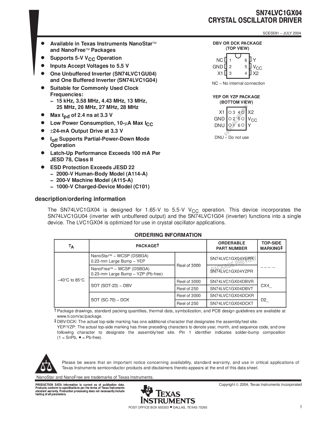 sn74lvc1gu04 (逆变器 与 无缓冲 输出) 和 这 sn74lvc1g04 (逆变器) 功能 进入 一个 单独