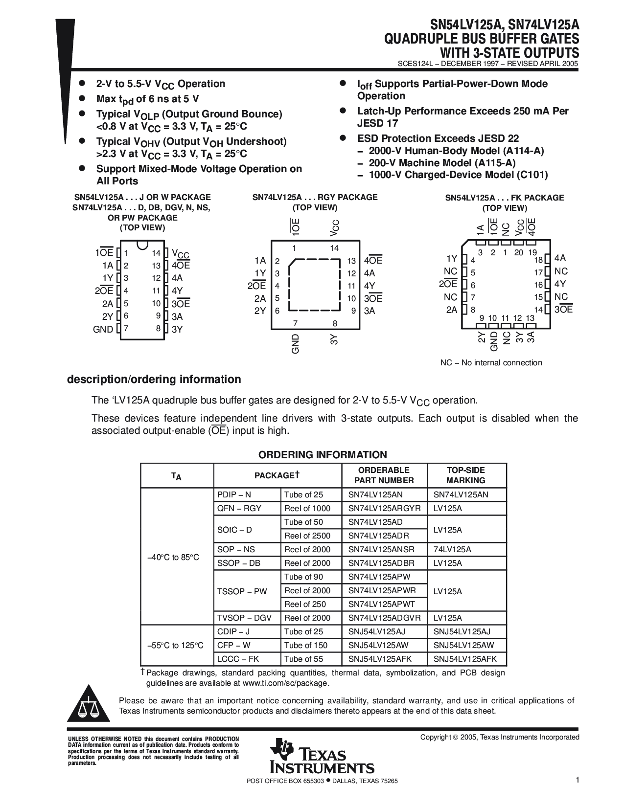 pdip − n 导管 的 25 SN74LV125AN SN74LV125AN