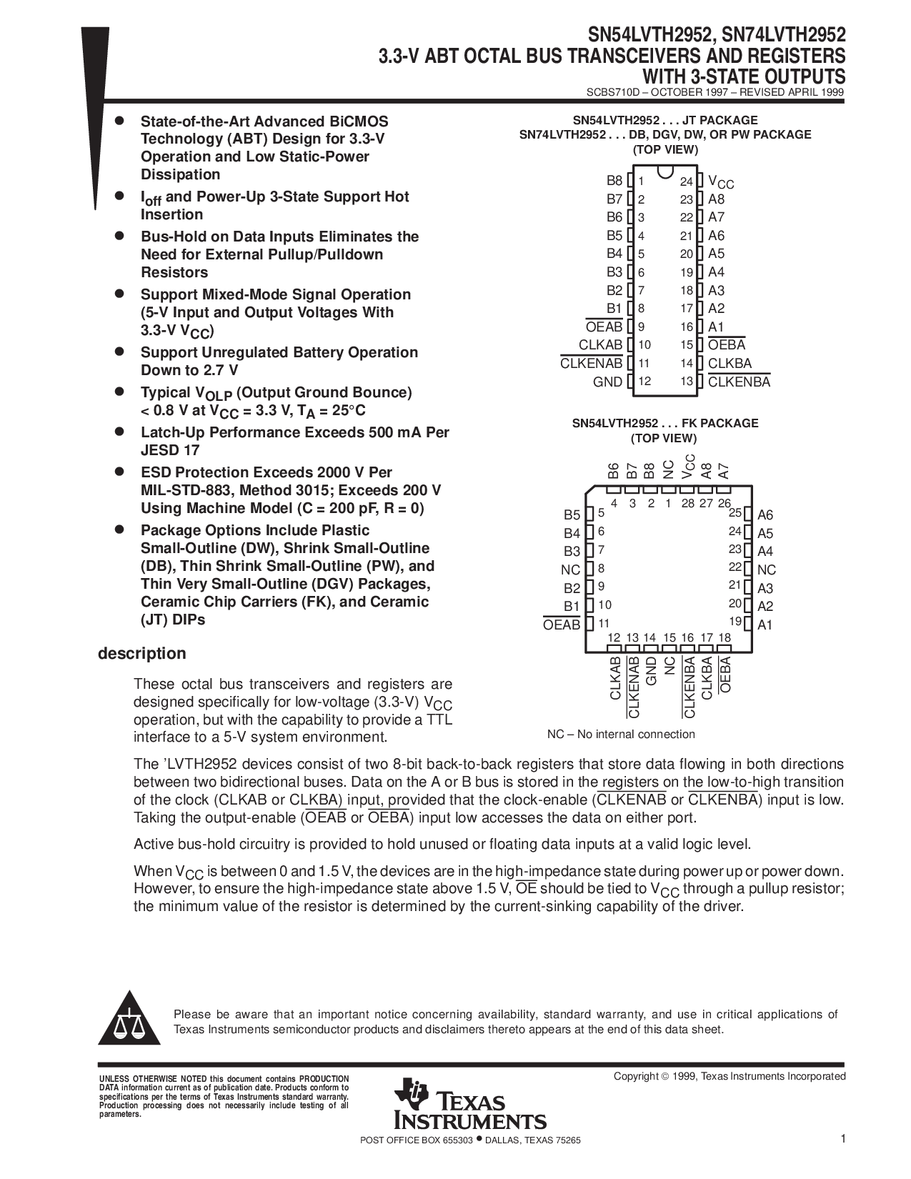 SN74LVTH2952 . . . db, dgv, dw, 或 pw 包装