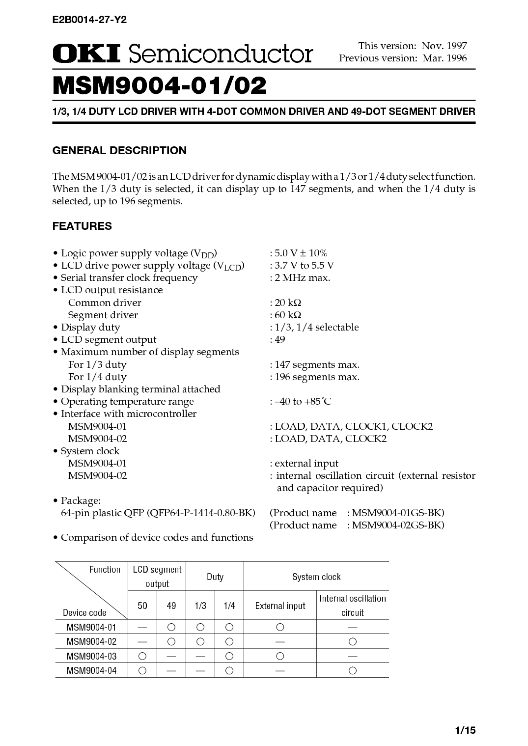 这 msm 9004-01/02 是 一个 lcd 驾驶员 用于 动态 显示 与 一个 1/3 或 1/4 职责 选择 功能.