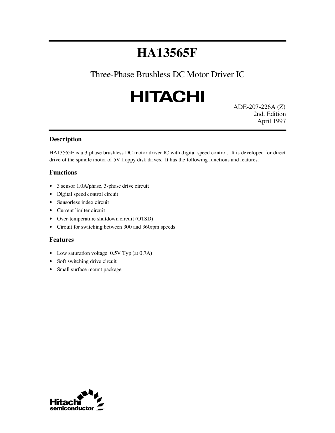 ha13565f 是 一个 3-相位 brushless 直流 电机 驾驶员 集成电路 与 数字 速度 控制. 它 是 已开发 用于 直接