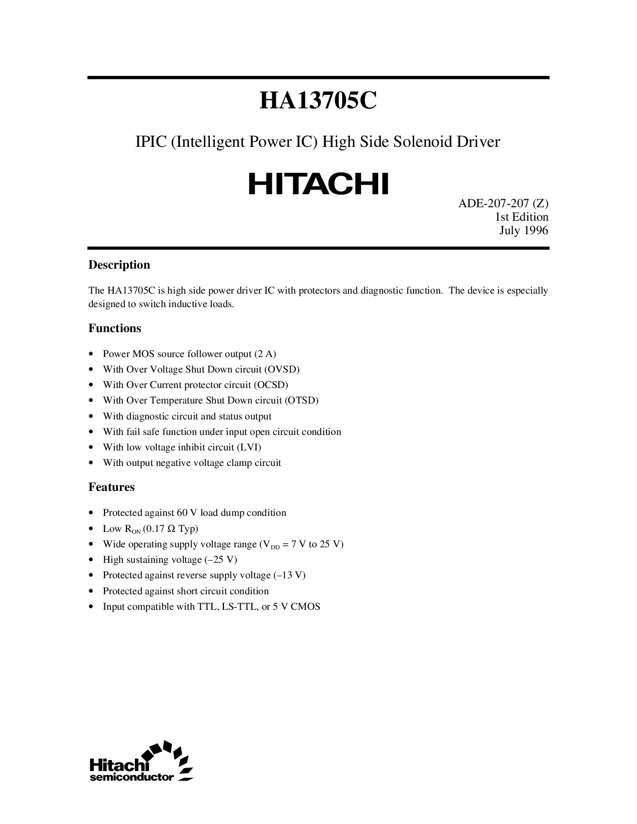 这 ha13705c 是 高 侧面 电源 驾驶员 集成电路 与 保护器 和 诊断 功能. 这 设备 是 尤其是