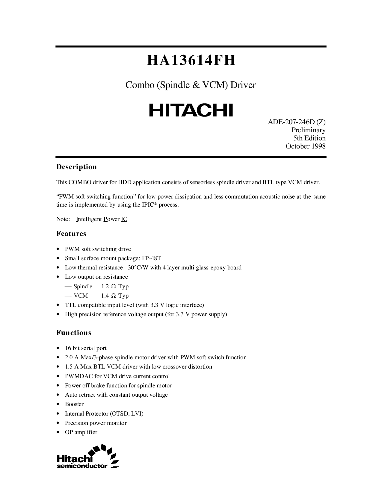 这个 组合 驾驶员 用于 hdd 应用程序 由 的 sensorless spindle 驾驶员 和 btl 类型 vcm 驾驶员.