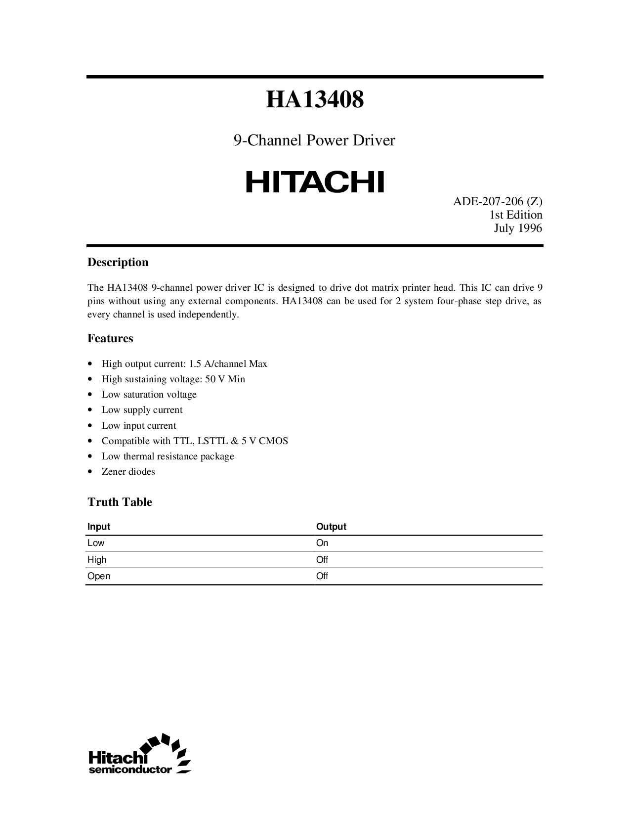 这 ha13408 9-频道 电源 驾驶员 集成电路 是 设计 至 驱动器 圆点 矩阵 打印机 封头. 这个 集成电路 可以 驱动器 9