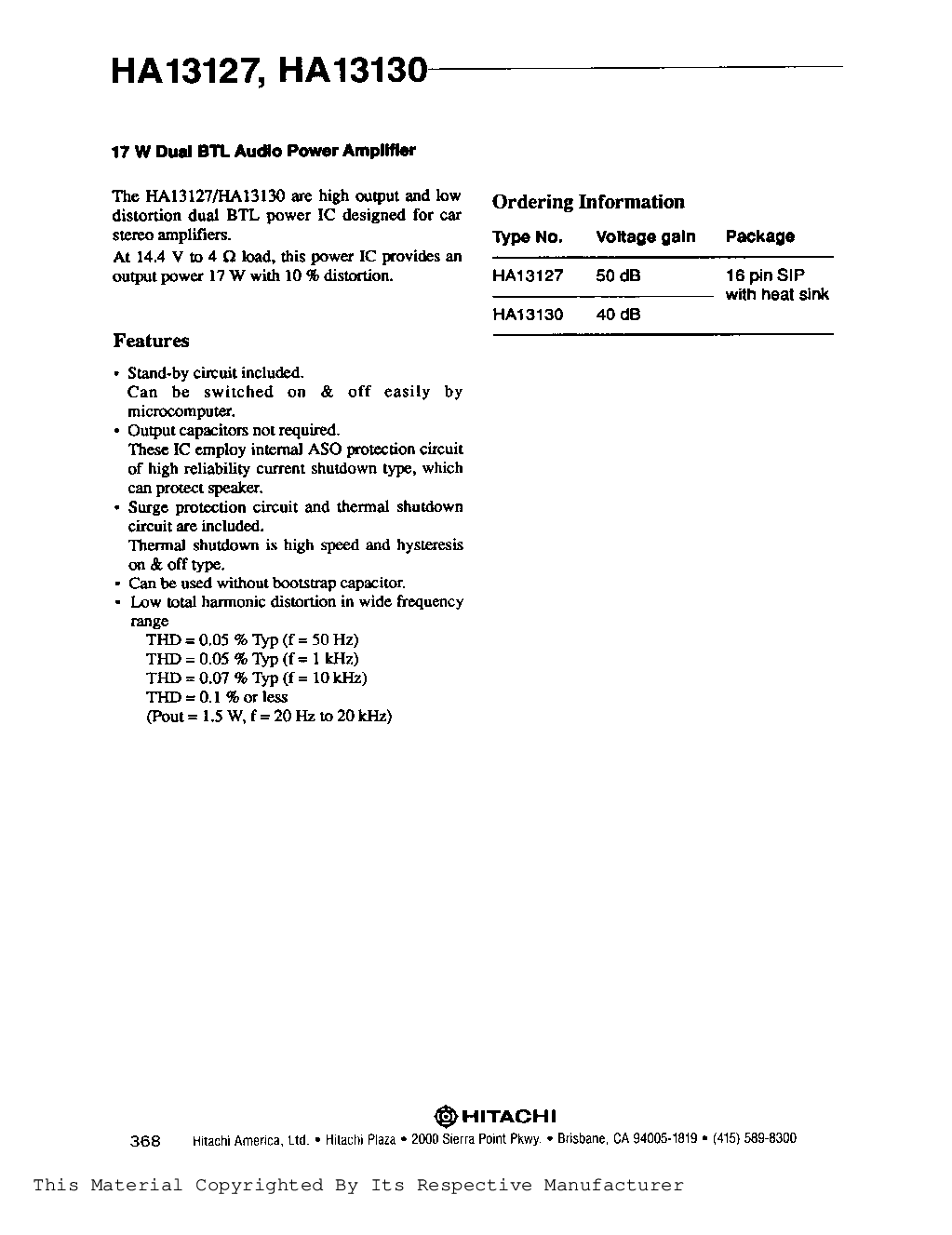 17W DUAL BTL AUDIO POWER AMPLIFIER