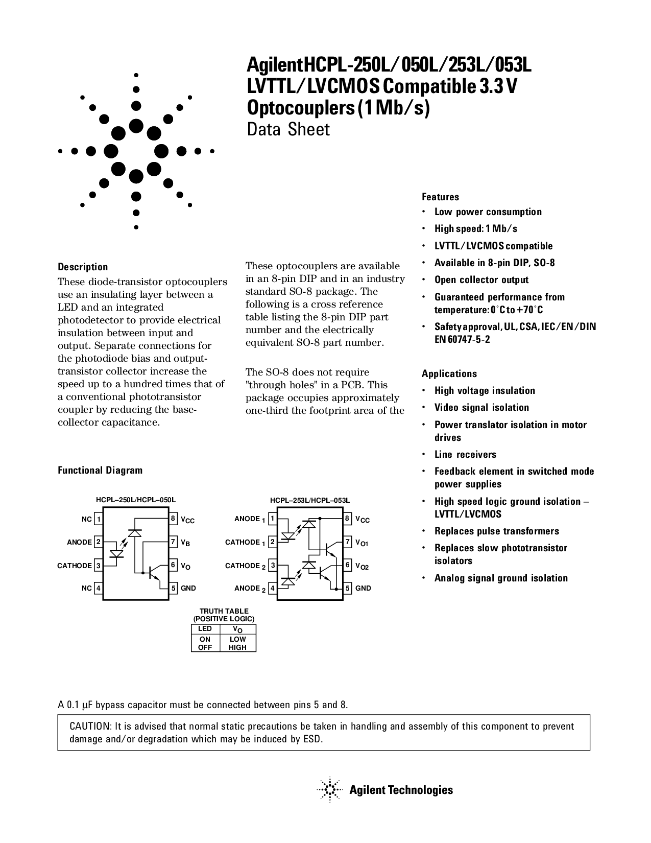 LVTTL/LVCMOS Compatible 3.3 V Optocouplers (1 Mb/s)