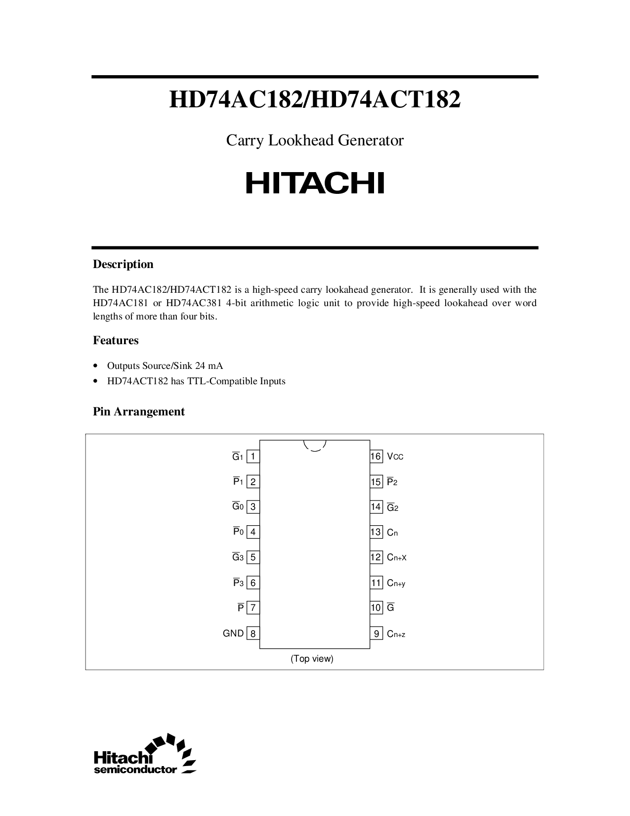 这 hd74ac182/hd74act182 是 一个 高速 进位 前瞻 发电机. 它 是 一般 已使用 与 这