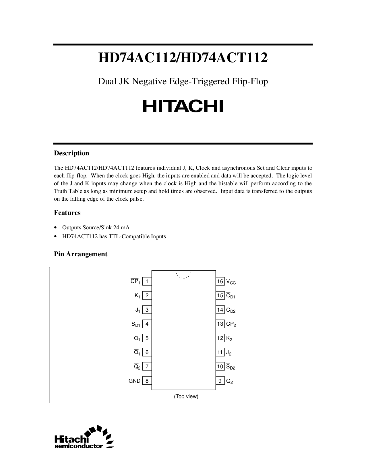 这 hd74ac112/hd74act112 特点 个人 j, k, 时钟 和 异步 设置 和 清除 输入 至