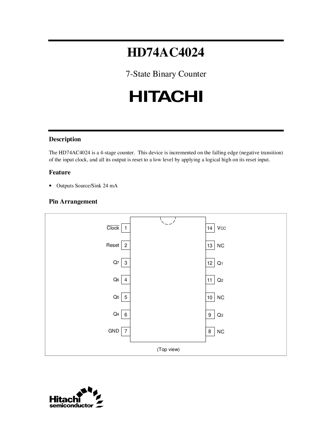 这 hd74ac4024 是 一个 4-舞台 计数器. 这个 设备 是 递增 开启 这 坠落 边缘 (负 过渡)