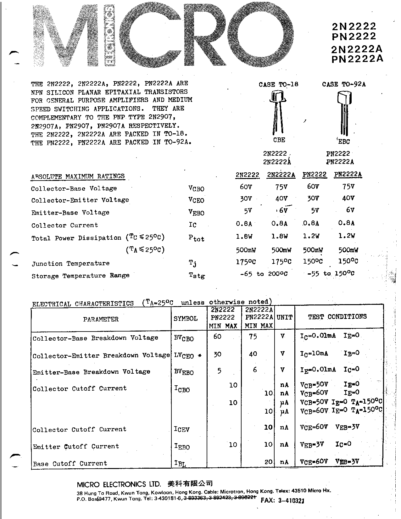 Bipolar NPN Device in a Hermetically sealed TO18 Metal Package.