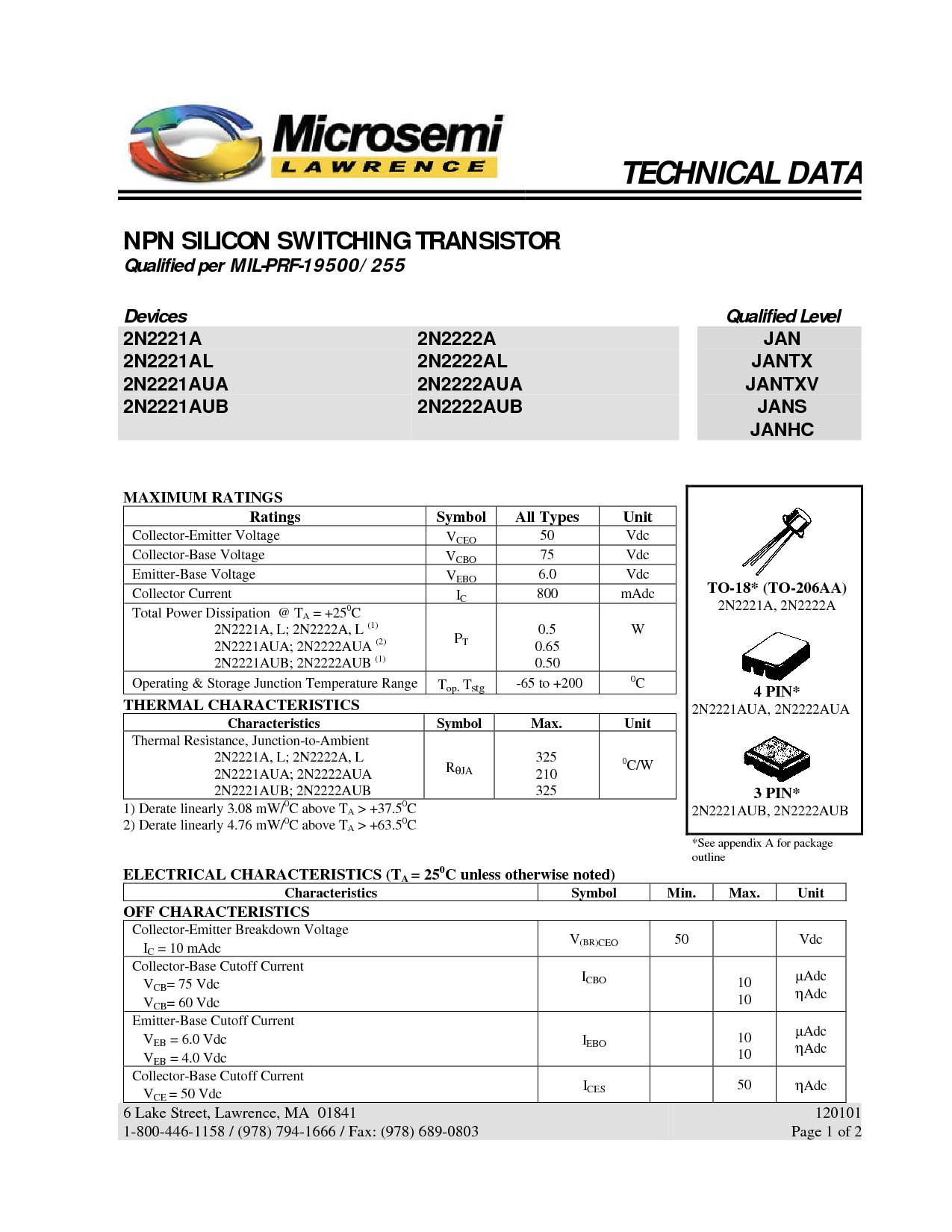 浏览型号2N2222A的Datasheet PDF文件第2页