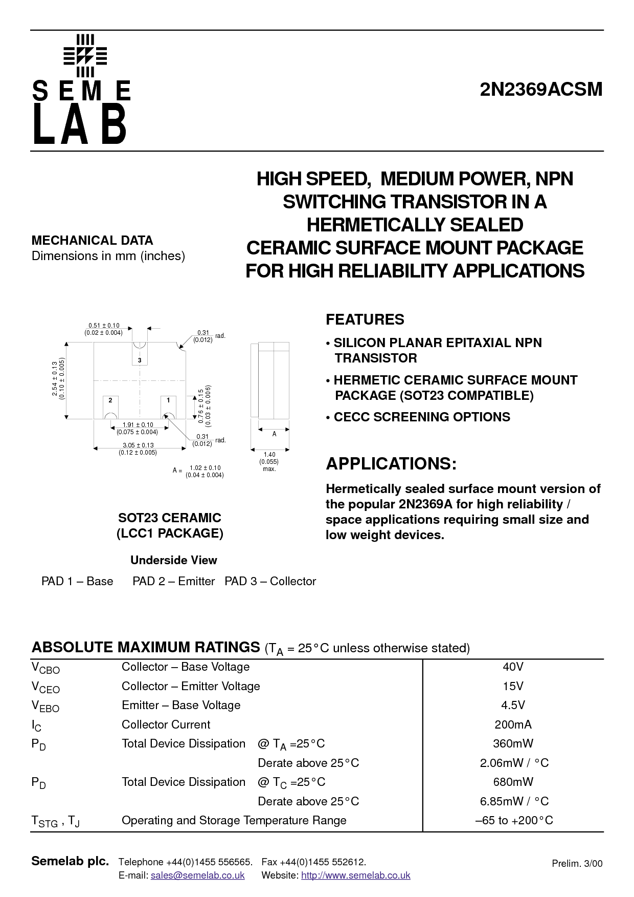 这 受欢迎 2n2369a 用于 高 可靠性 /