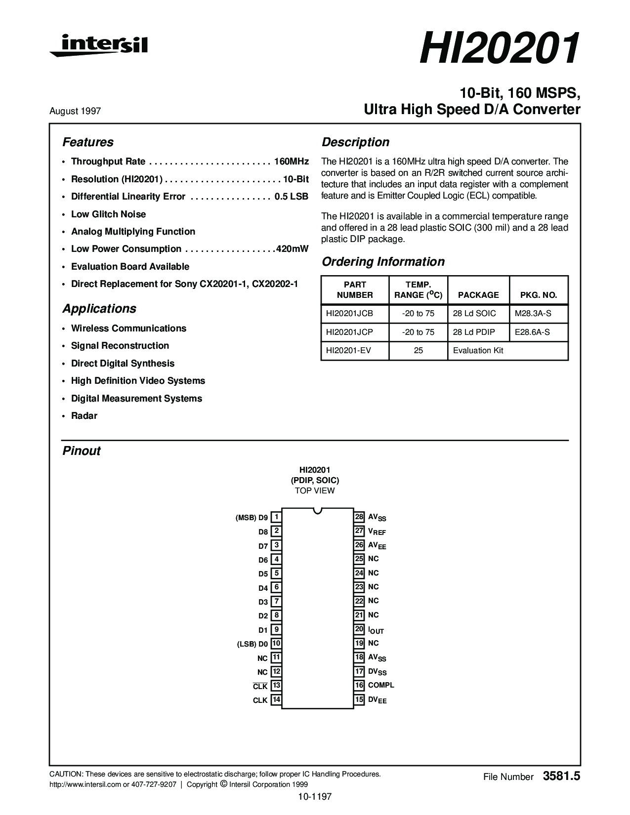 这 hi20201 是 一个 160mhz 超 高 速度 d/一个 变频器. 这