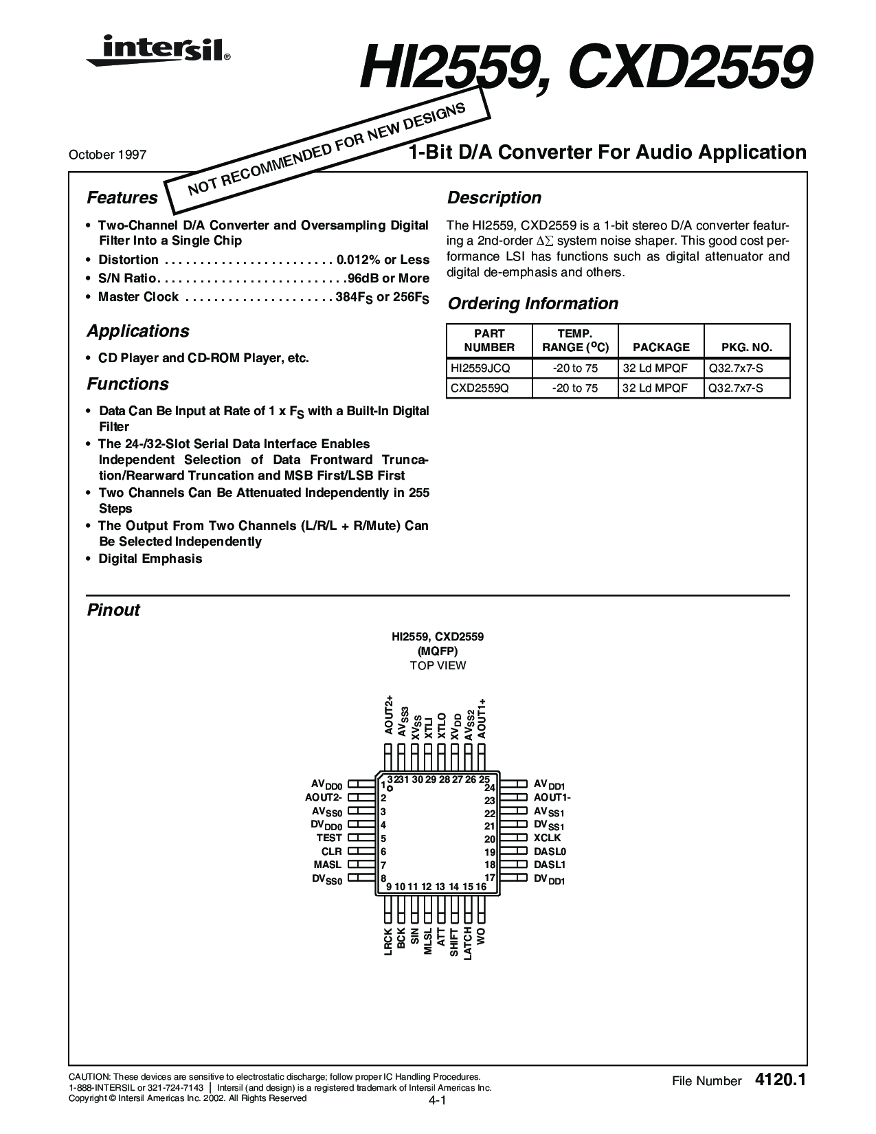 这 hi2559, cxd2559 是 一个 1-有点 立体声 d/一个 变频器 特色-