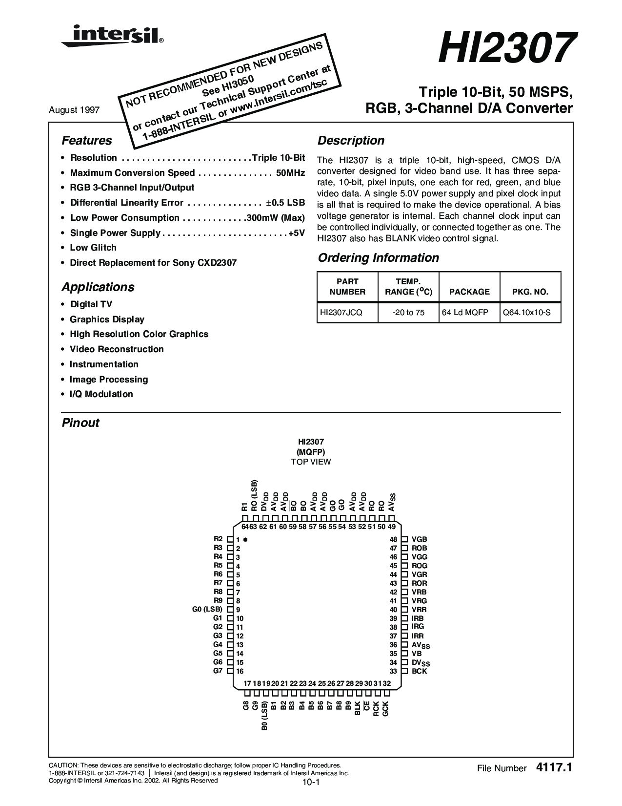 HI2307JCQ -20 至 75 64 ld mqfp q64.10x10-s