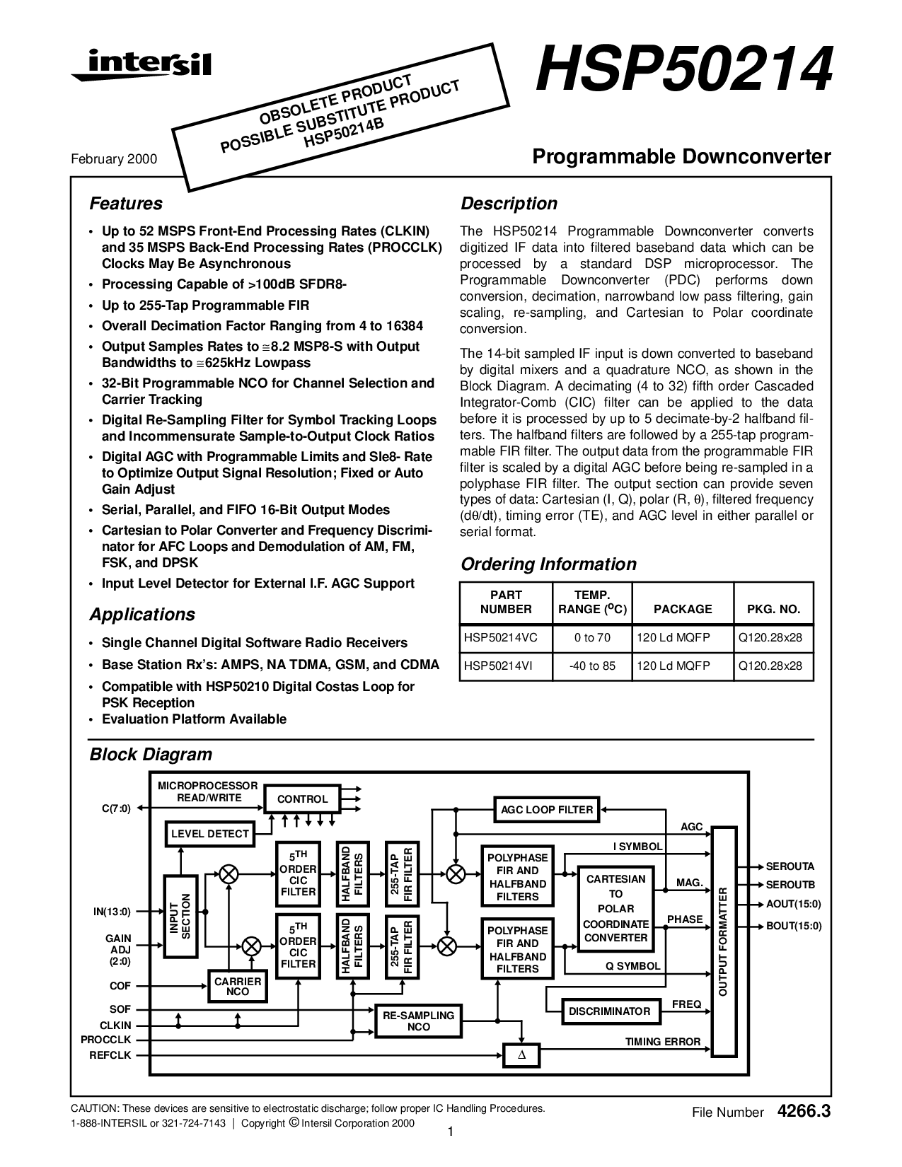 HSP50214VC 0 至 70 120 ld mqfp q120.28x28